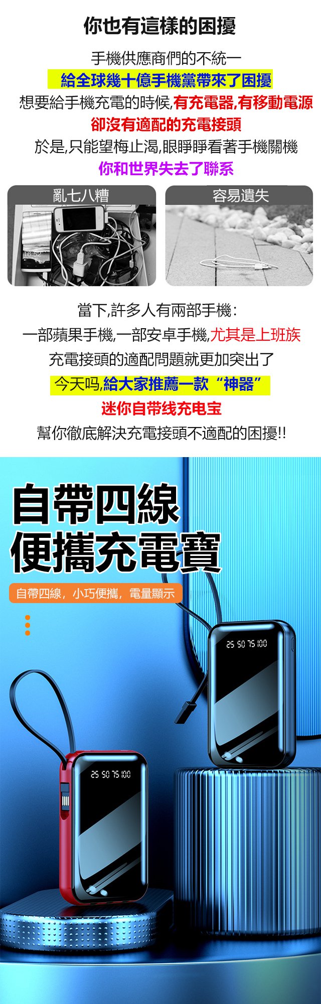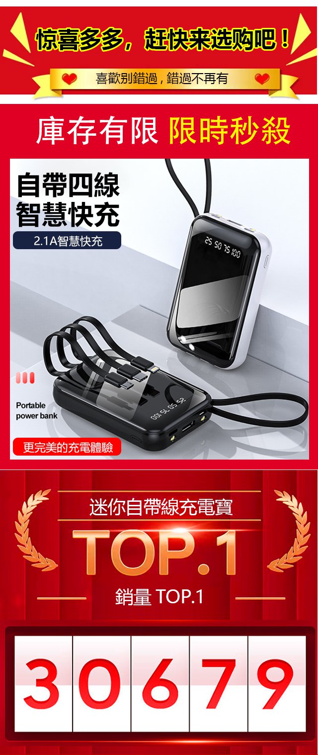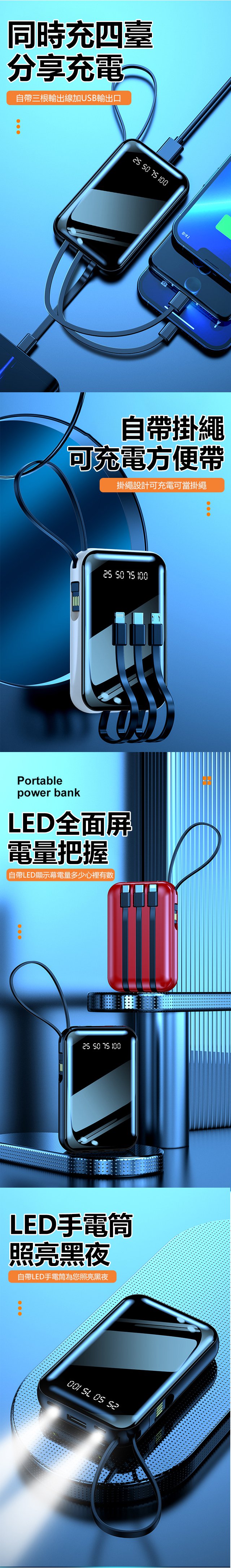 12分鐘前自帶四線的20000mAh快充充電寶,出門被各種要鏈接,20000M超大容量迷你充電寶,自帶4根手機快充線,各類手機都是可以使用 - 一組入NT$1198