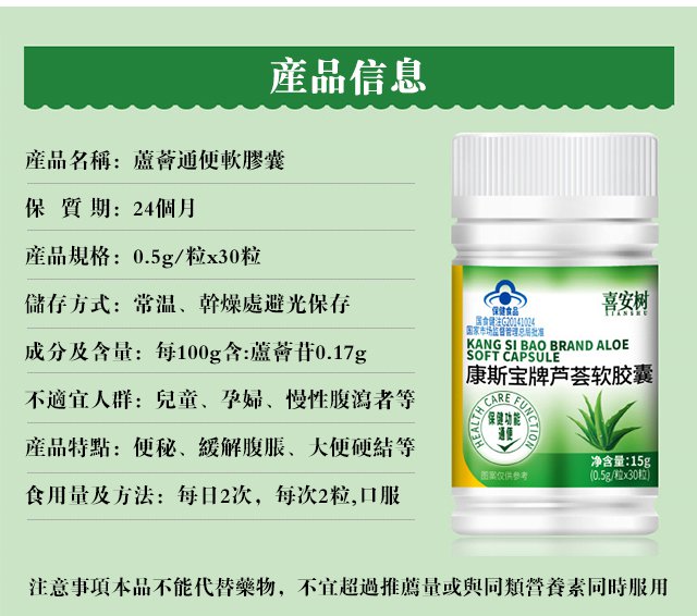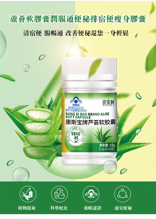 半小時前蘆薈軟膠囊潤腸通便秘排宿便瘦身膠囊 - 買三送三1090