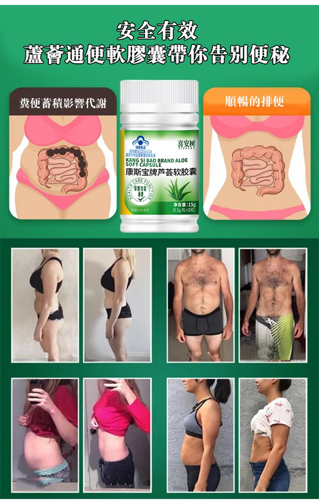 4分鐘前蘆薈軟膠囊潤腸通便秘排宿便瘦身膠囊 - 買三送三1090