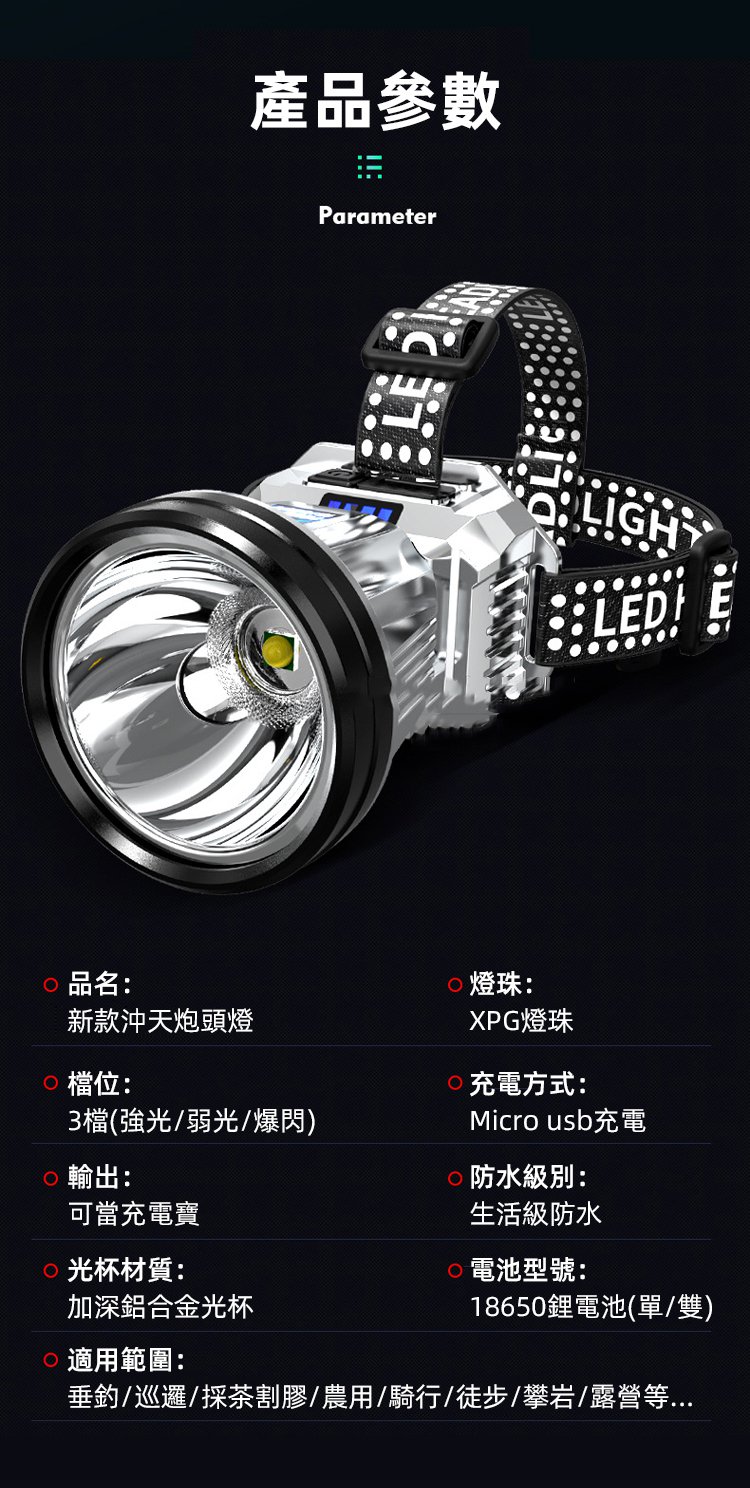11分鐘前新款德國沖天炮頭燈XPG大功率 真正的黑科技 激光射程3000米【可作為移動電源】 - 體驗組【一入組】NT$899