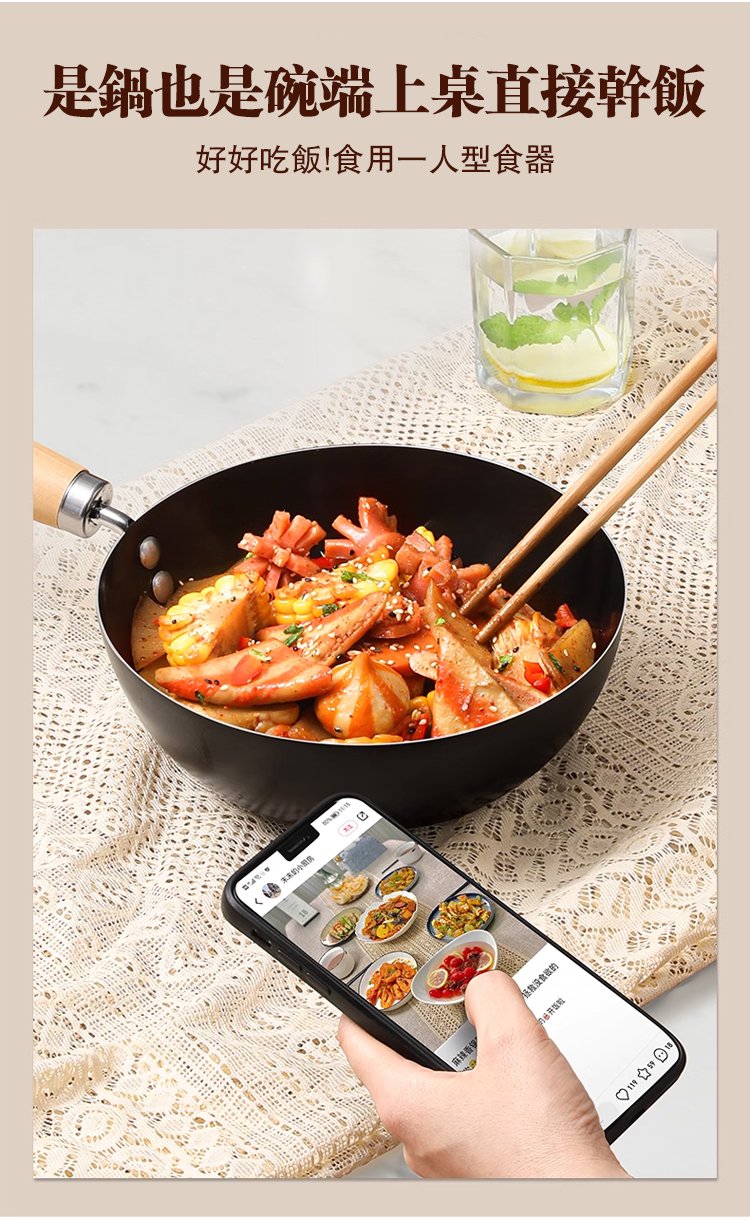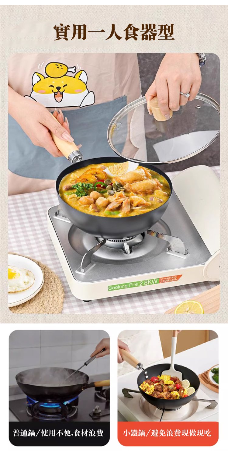 15分鐘前我終於能夠單手拋鍋了!只有我臉一樣大小的迷你炒鍋,精鐵加不塗層用著放心,鐵鍋也可以這麼萌這麼可愛!小巧的無塗層小鐵鍋,可愛好看好用哈! - 迷你家用煎炒鍋