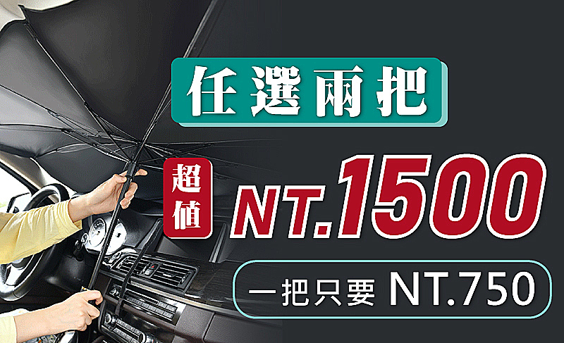 2分鐘前新一代車用遮陽傘/【高效防曬】高效阻擋99%紫外線一招讓你上車不再燙屁股/輕鬆解決愛車過曝/內裝老化問題! - 【夏季超值組合】任選兩把 NT$1500
