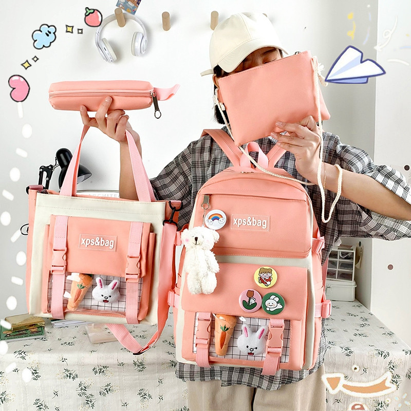 12分鐘前韩版潮流四件套學生書包_國小國中高中背包_大學生帆布撞色雙肩 - 【新品上市】1入组 -NT$1180