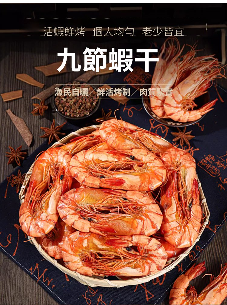 半小時前【鮮活烤制】無添加九節蝦干 火爆熱銷中!台灣本土出貨!24小時在線客服,售後無憂!現在下單享受在線支付立減活動! - 【限時瘋搶 實惠裝】2入組$1398(低至699/入)